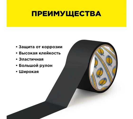 Лента клейкая для герметизации Aviora, 38 мм x 25 м, черная, 1шт, односторонняя интересное: