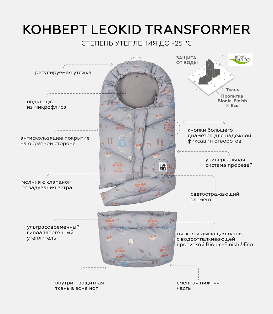 Конверт-трансформер - LeoKid Transform, цвет Steffan (Светло-серый с принтом) интересное: