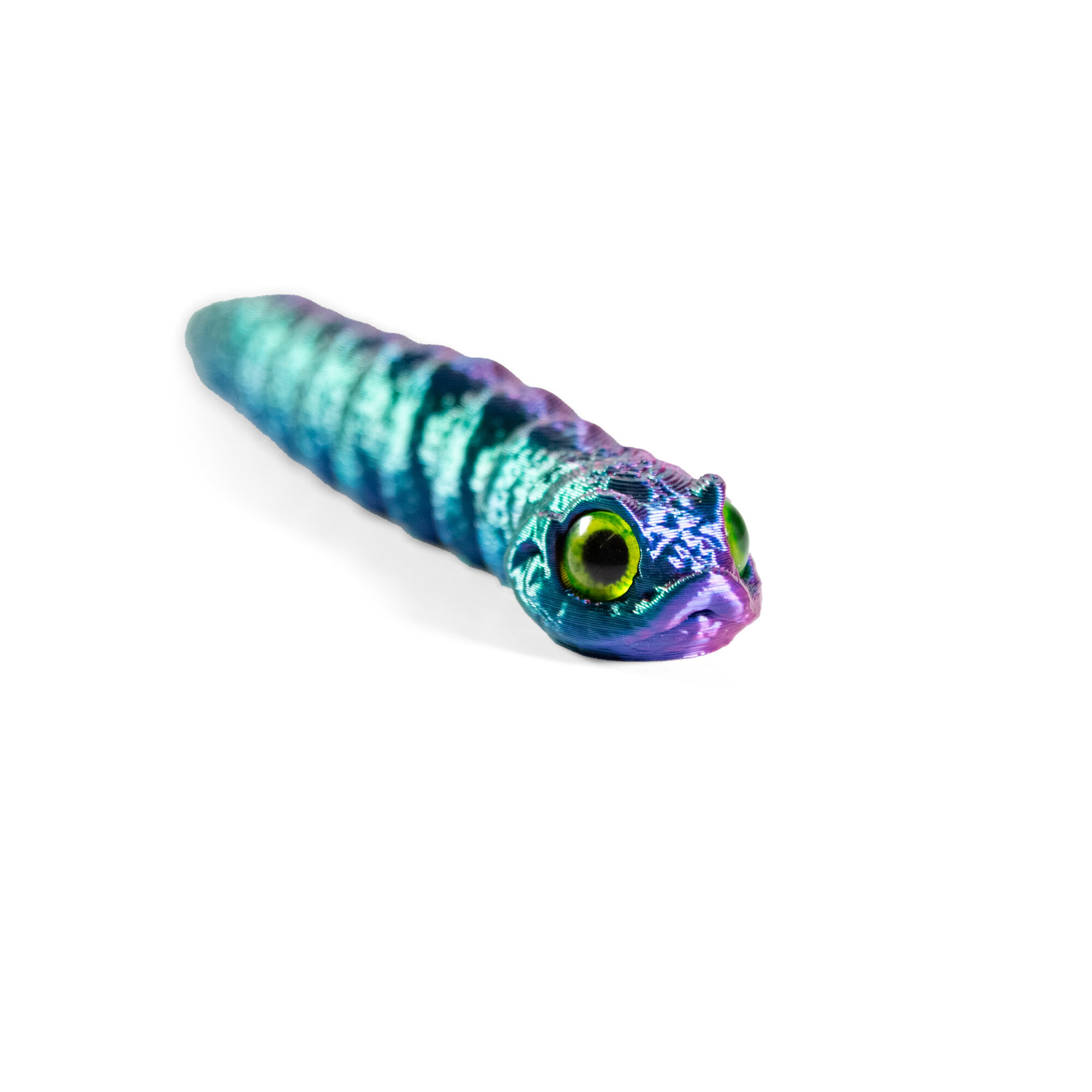 Гибкая игрушка-антистресс, змея с глазами, 27 см, зеленая с синим