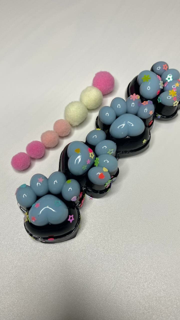 Купить Сквиш Лапка Антистресс " 4 мини лапки в комплекте " цвет: Черно-Голубой