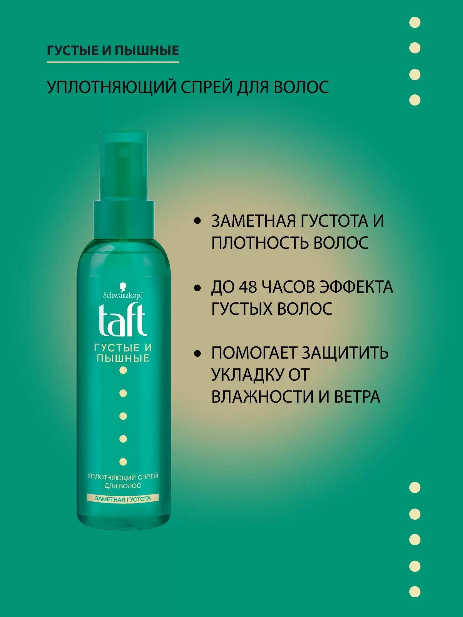 Taft Уплотняющий спрей для волос, Густые и Пышные, 150 мл