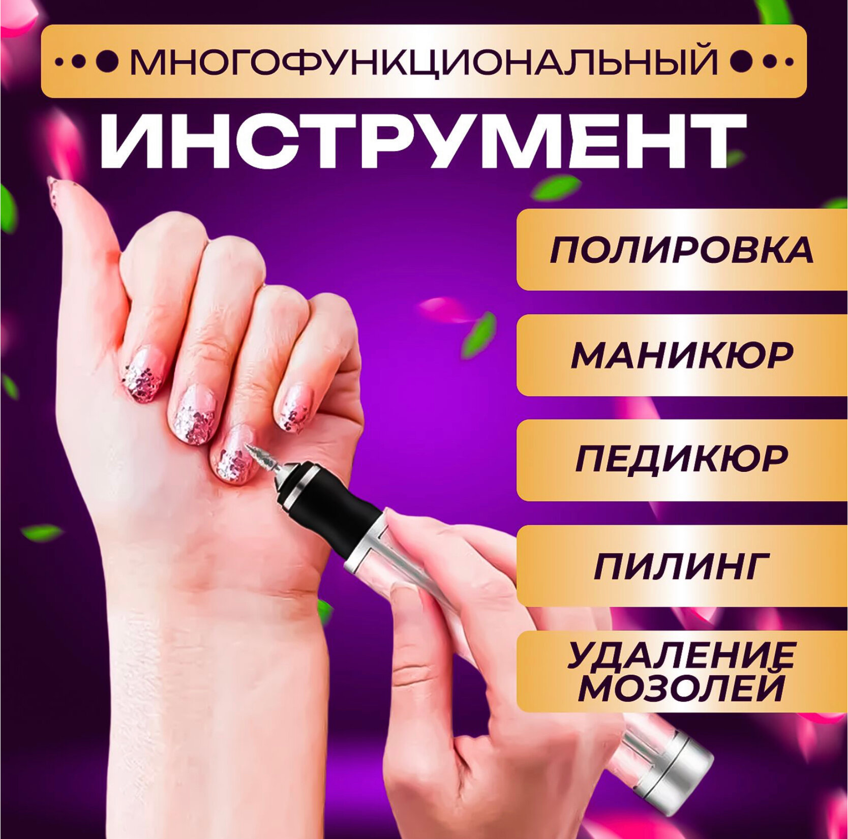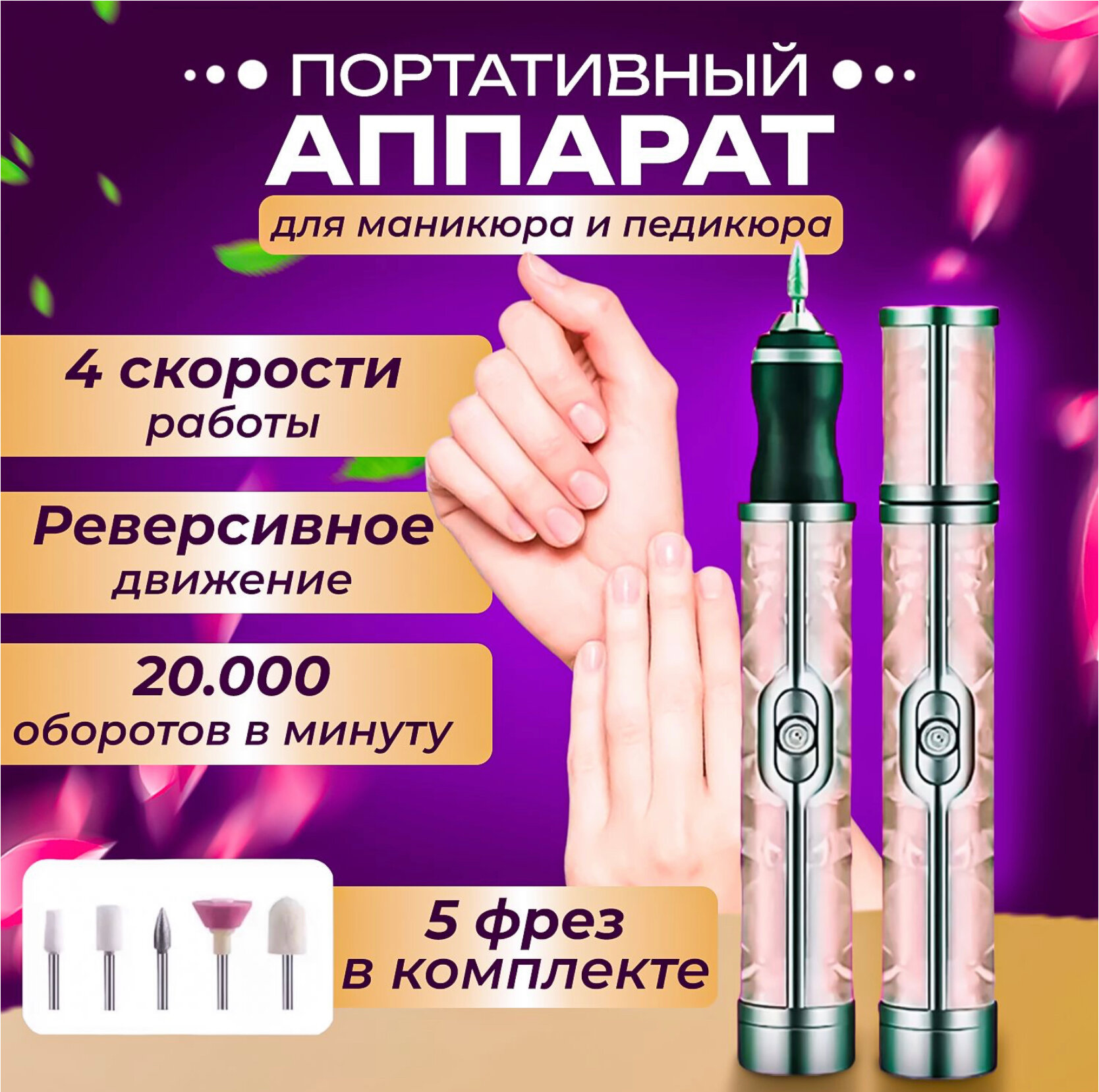 Аппарат машинка для маникюра педикюра ногтей с фрезами набор Розовый интересное: