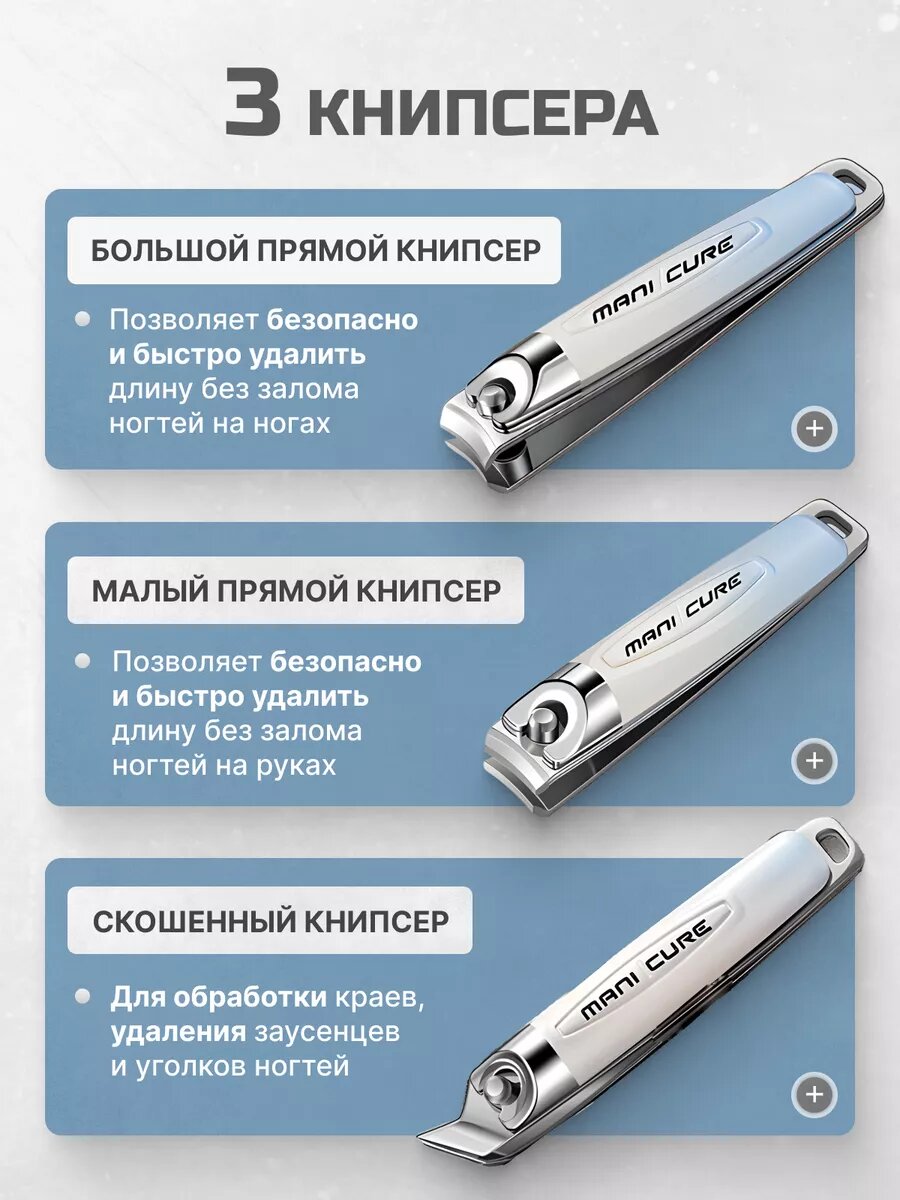 | Состав набора | книпсер, кусачки для маникюра, кусачки для педикюра, пилка |