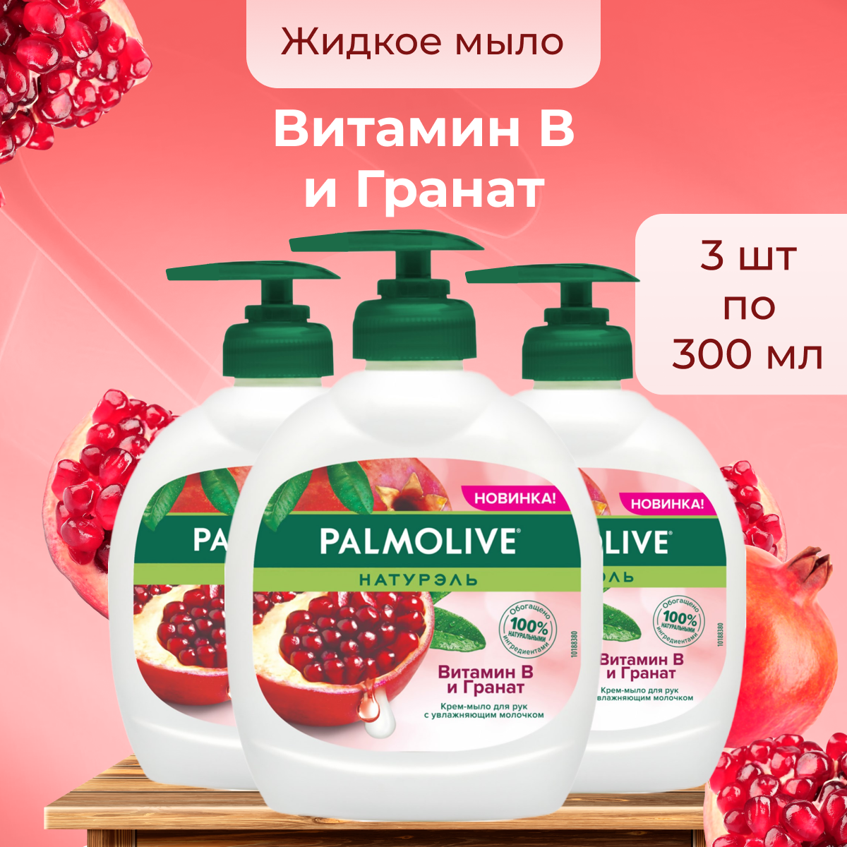Palmolive натурэль Мыло жидкое витамин В и гранат, 300мл, 3 уп.