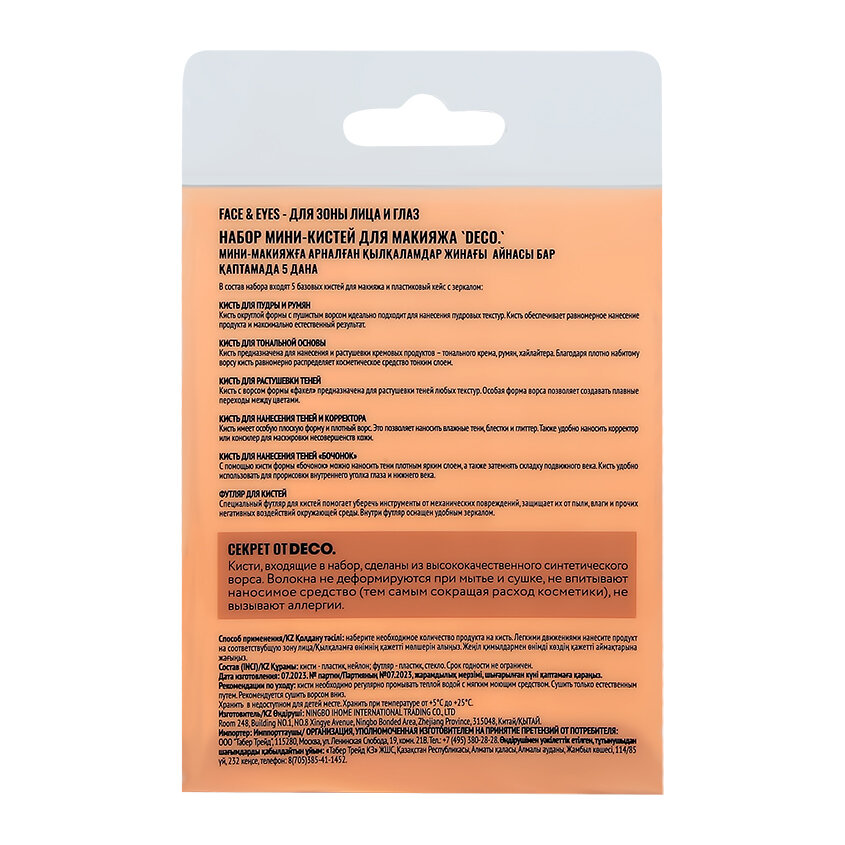 | Дополнительная информация | В состав набора входят 5 базовых кистей для макияжа и пластиковый кейс с зеркалом. |