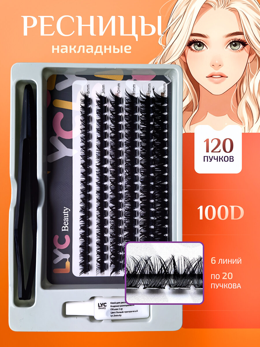 Накладные ресницы "LYC" пучки 80d 8-9-10-11-12-14
