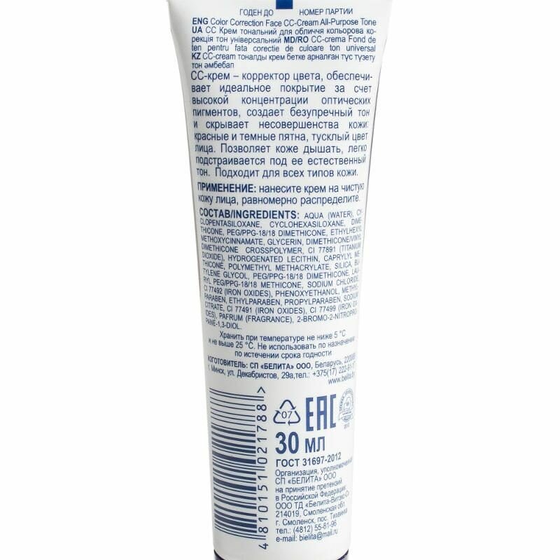| Способ применения | нанесите СС-крем на чистую кожу лица, равномерно распределите. |
