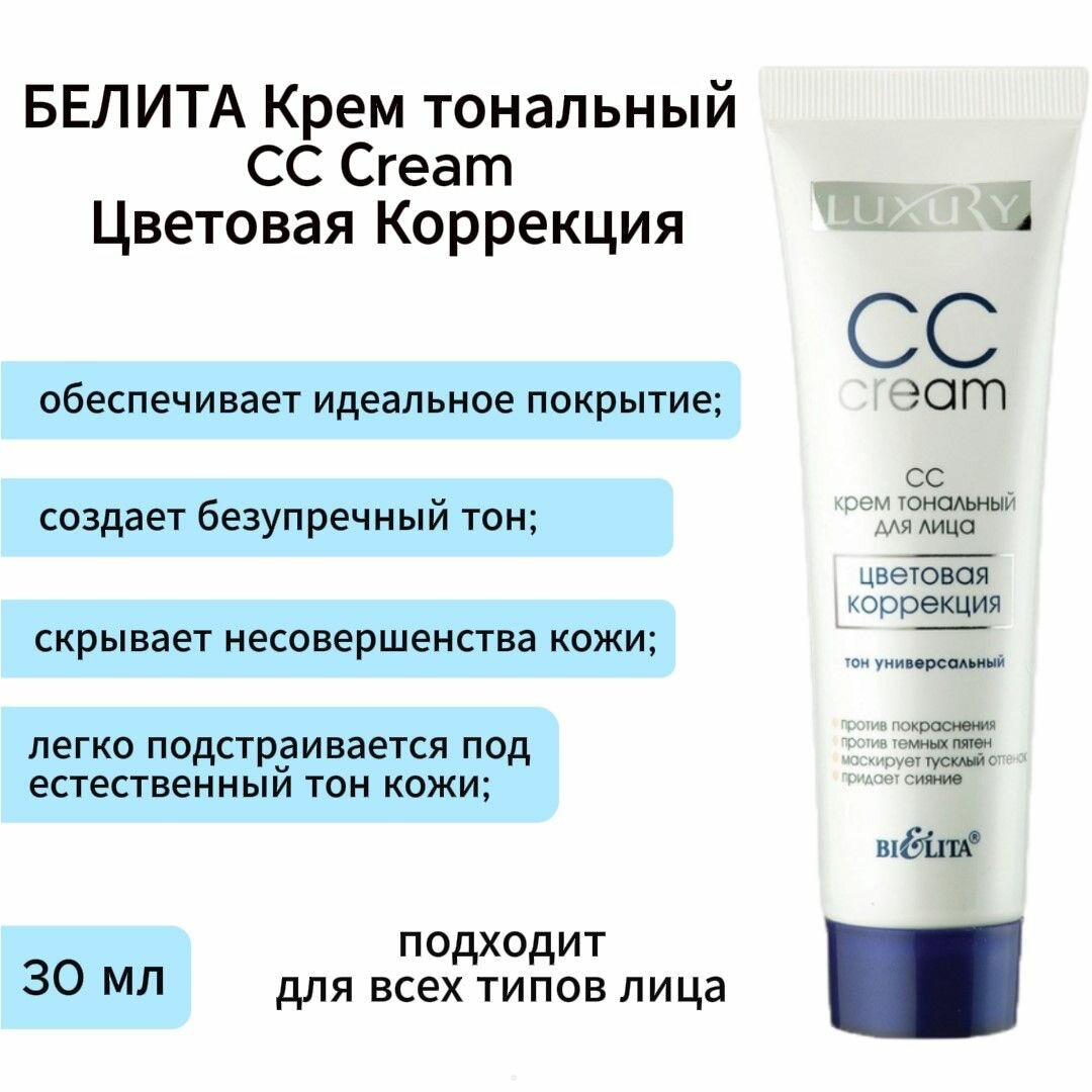 BIELITA СС крем тональный для лица цветовая коррекция тон универсальный LUXURY