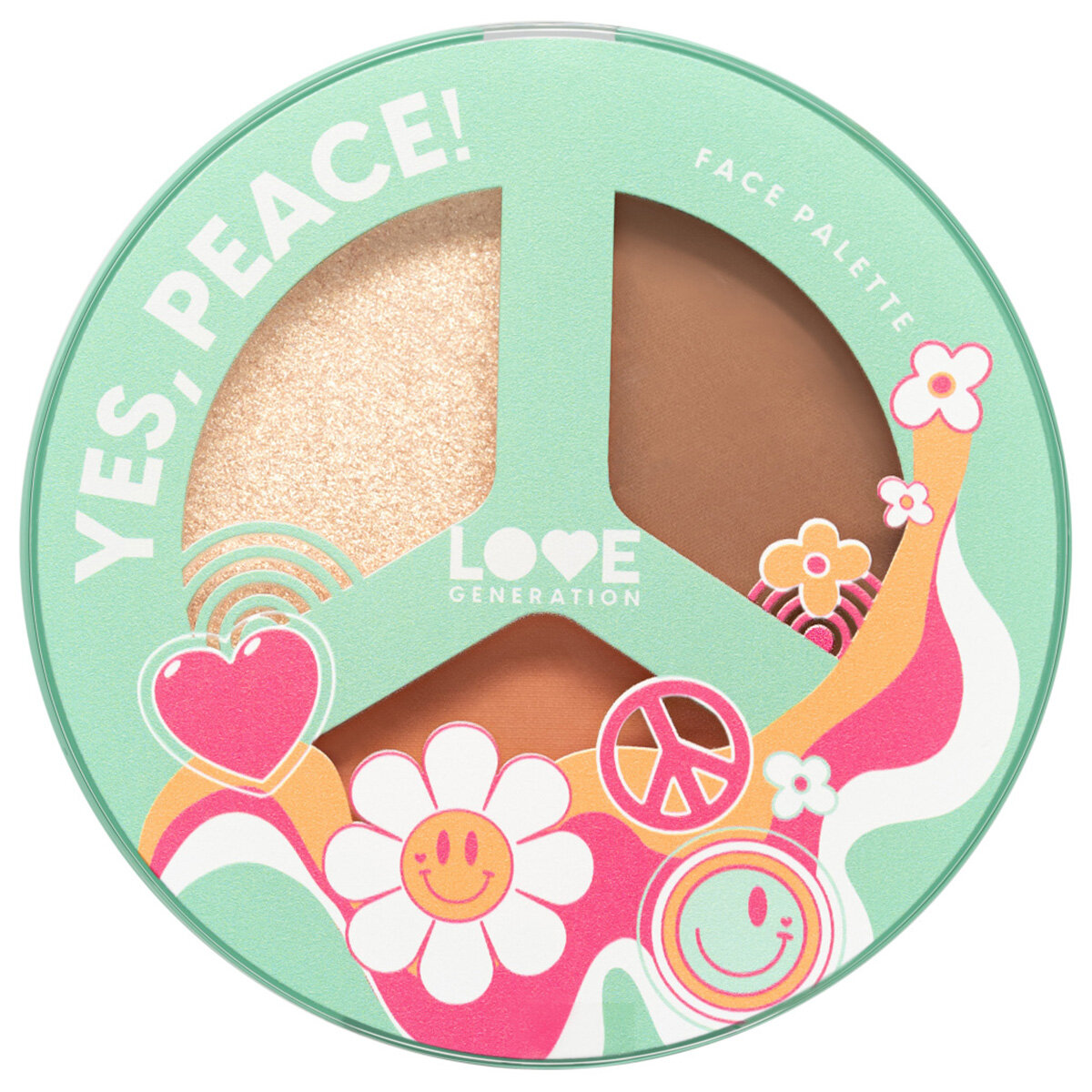 Палетка для скульптурирования лица Love Generation Yes, Peace!, тон 04 золотой/голубой/персиковый
