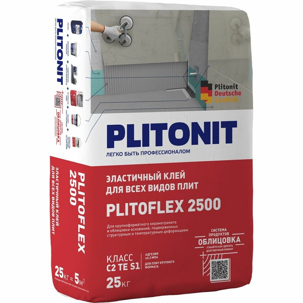 Плитонит PLITOFLEX 2500 Клей для плитки эластичный серый класс С2ТЕ интересное: