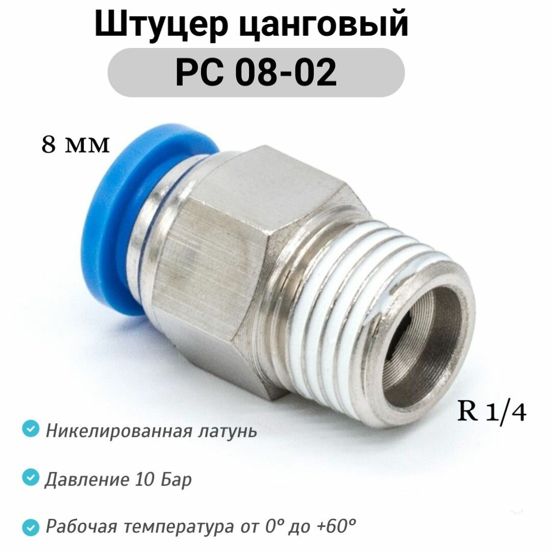 Штуцер прямой с наружной резьбой (R1/4) - PC 08-02 пневмофитинг цанговый быстросъемный интересное: