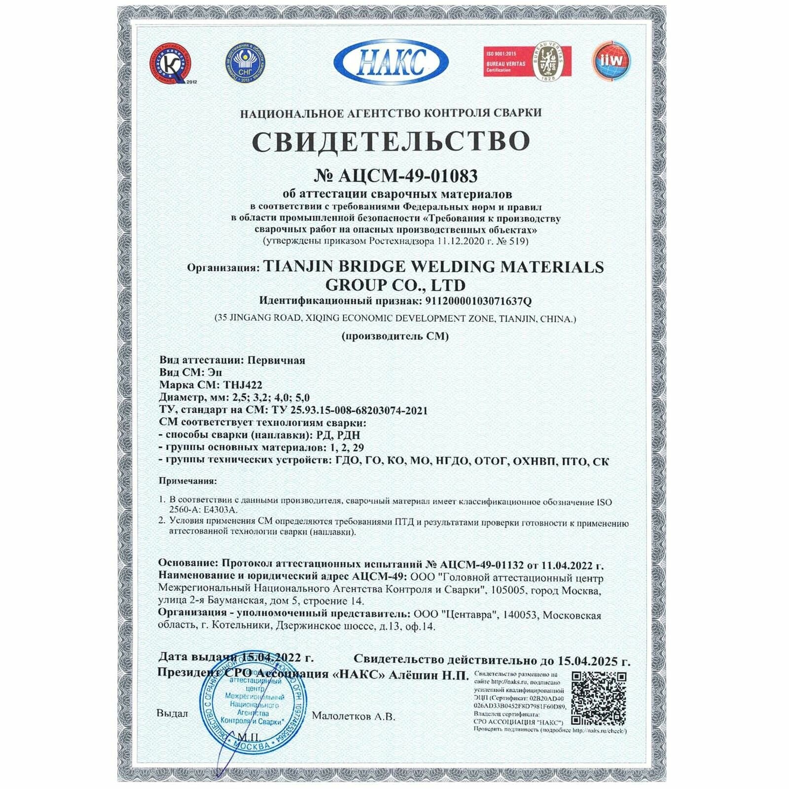 Электроды thj422 "bridge" для низкоуглеродистых сталей 2,5 мм х 300 мм (коробка 1 кг)