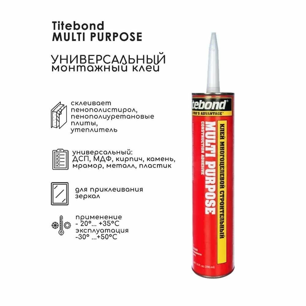 Тайтбонд Multi-Purpose клей многоцелевой (0,296л) / TITEBOND Multi-Purpose многоцелевой жидкие гвозди (0,296л) красный картридж
