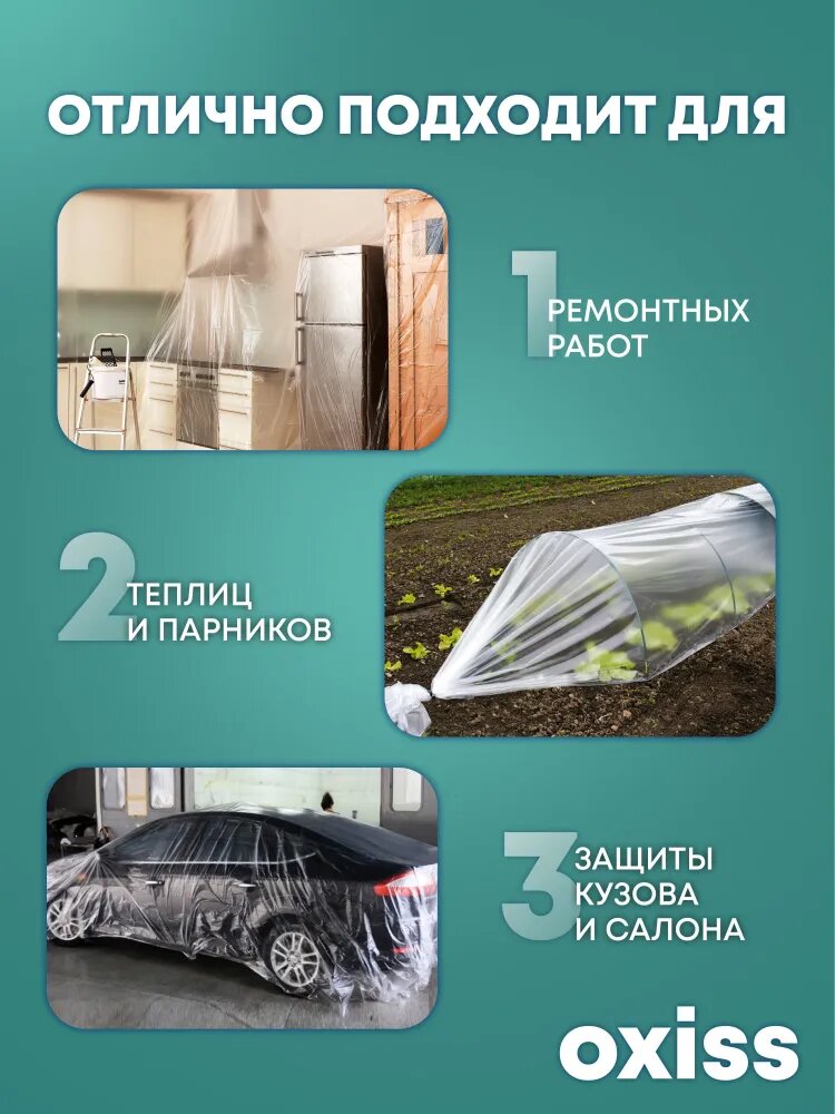 Защитная пленка OXISS, полиэтиленовая, 12,5x4 м, бесцветная интересное: