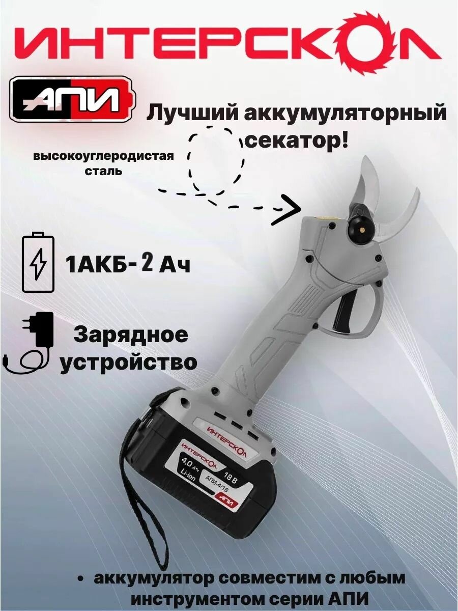 Секатор-кусторез аккумуляторный ИНТЕРСКОЛ СА-30/18В бесщеточный (кейс, 1 аккум. 2,0Ач, ЗУ) интересное: