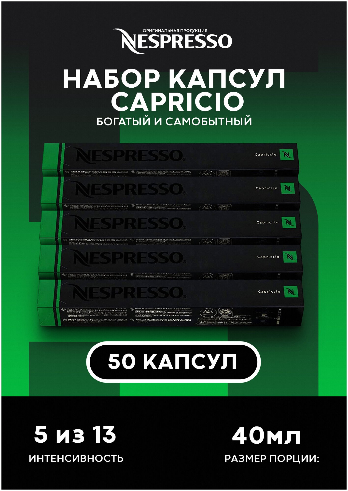 Кофе в капсулах Nespresso Capriccio, 10 кап. в уп., 5 уп.