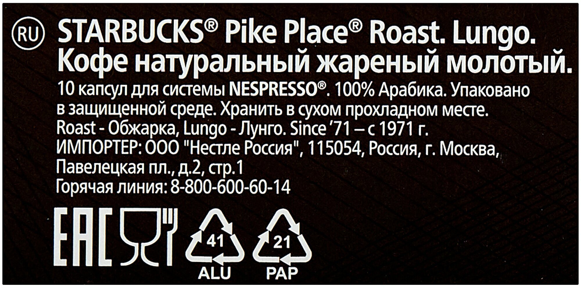 СохранитьКофе в капсулах STARBUCKS Pike Place Roast 120 шт 53 г, Швейцария интересное: