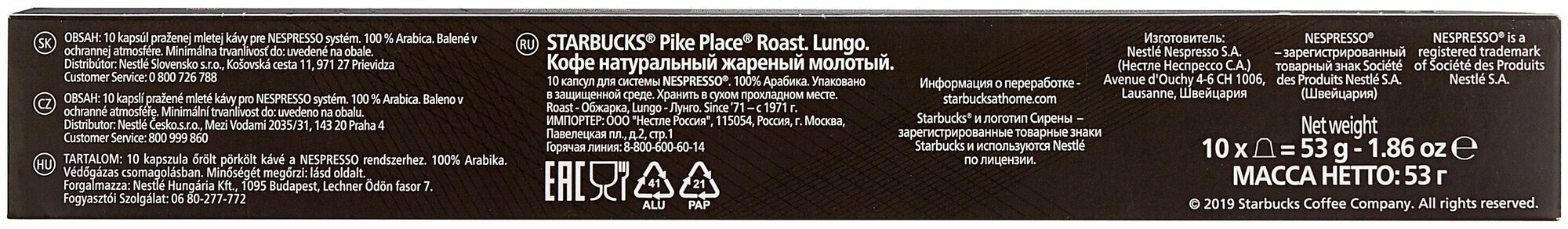 Купить Кофе в капсулах STARBUCKS Pike Place Roast 120 шт 53 г, Швейцария