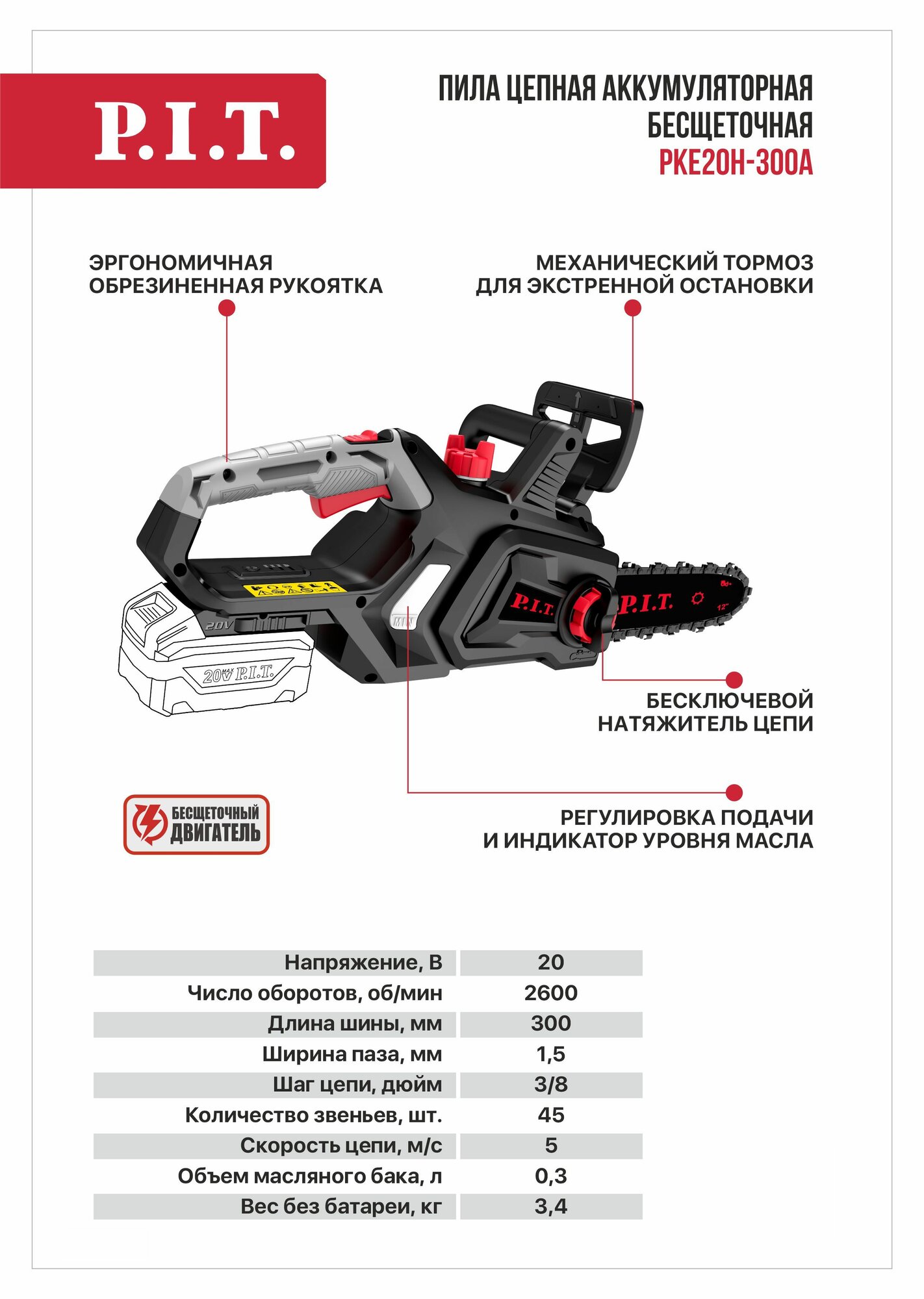 Пила цепная аккумуляторная P.I.T. PKE20H-300A SOLO (без АКБ и ЗУ) интересное: