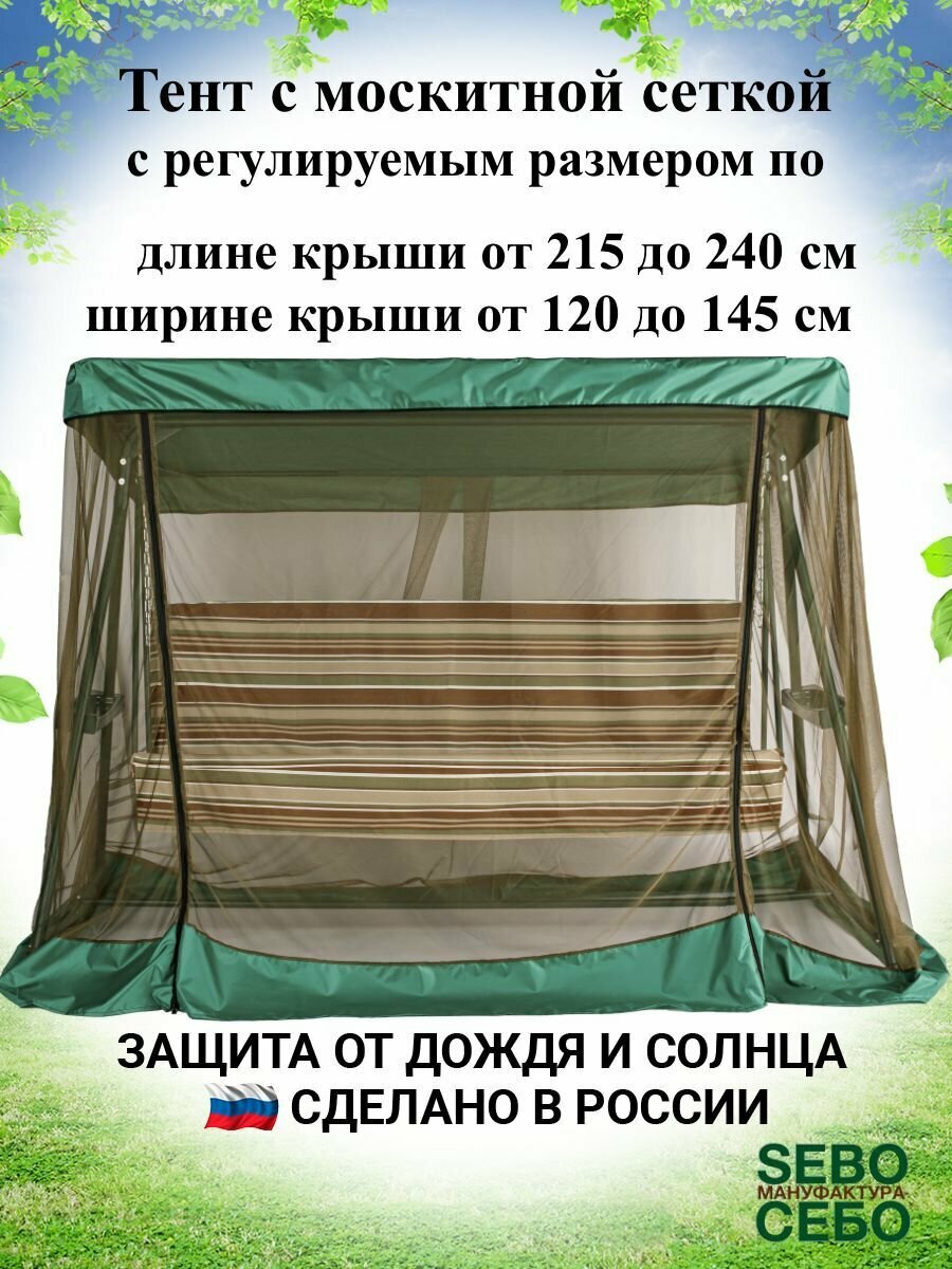 Тент с москитной сеткой (длина 215-240 см/ ширина 120-145 см) для садовых качелей, зеленый, универсальный