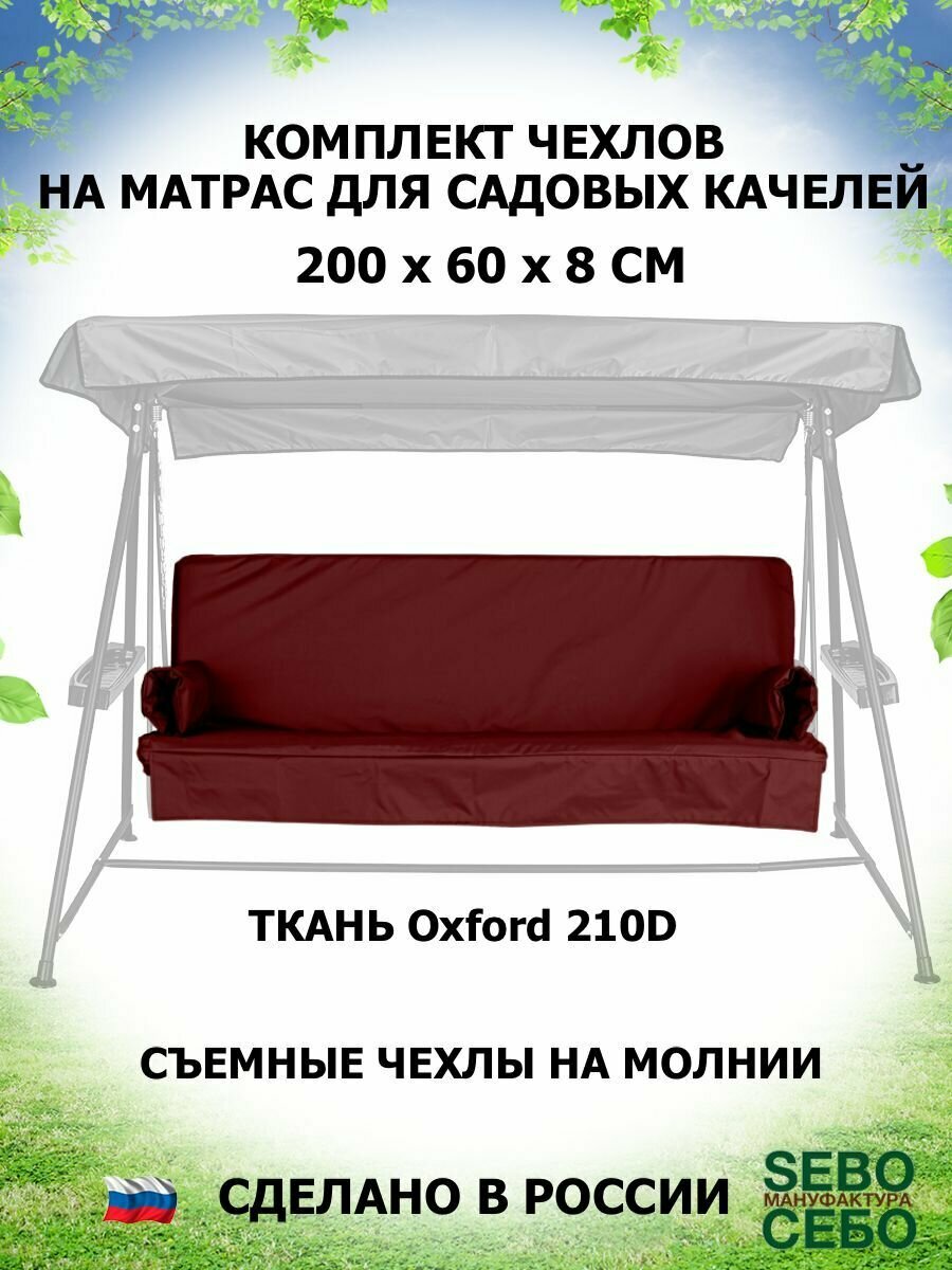 Купить Чехол съемный на матрас для садовых качелей 200х60х8 см, водоотталкивающая ткань, бордовый