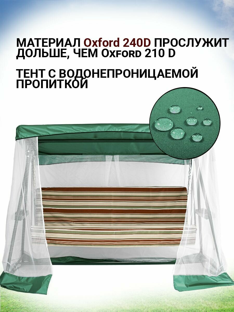Тент с москитной сеткой (длина 230-255 см/ ширина 120-145 см) для садовых качелей, зеленый, универсальный