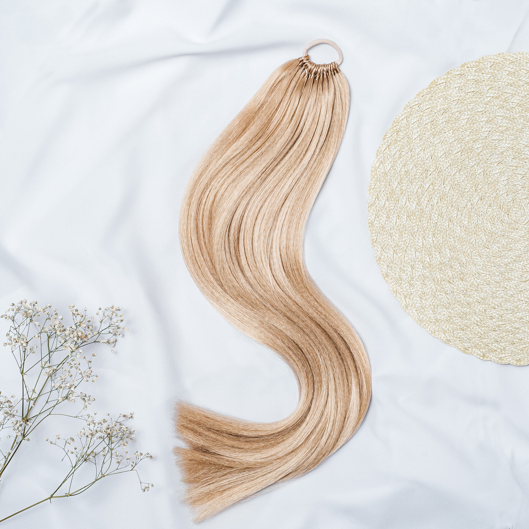 Хвост светло-русый на резинке. Афростиль. Искусственные волосы. 70 см, 130 гр.