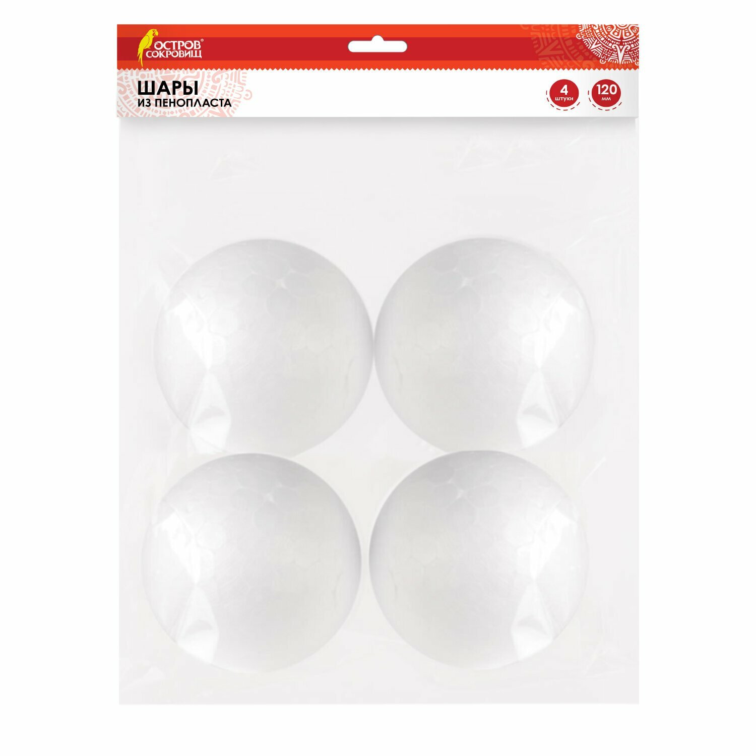Шар из пенопласта для рукоделия 12 см, набор 4 штук, заготовки для творчества, Остров Сокровищ, 665370