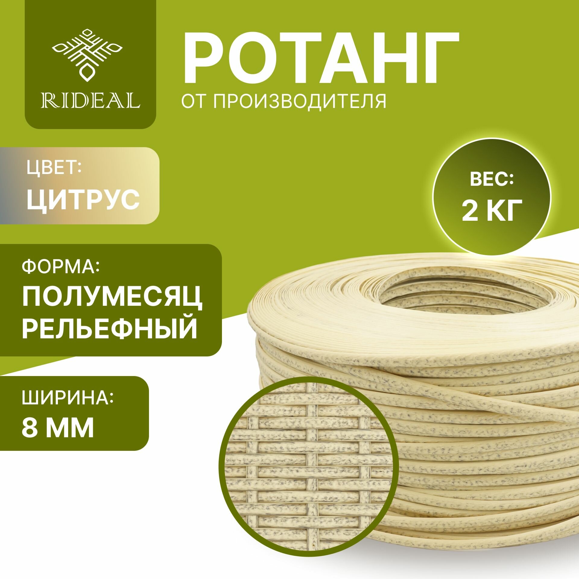 Ниже Вы можете прочитать отзывы на Ротанг 2кг для плетения полумесяц рельефный, цвет цитрус, ознакомится с подробными характеристиками, посмотреть интересные обзоры и фотографии на Ротанг 2кг для плетения полумесяц рельефный, цвет цитрус.