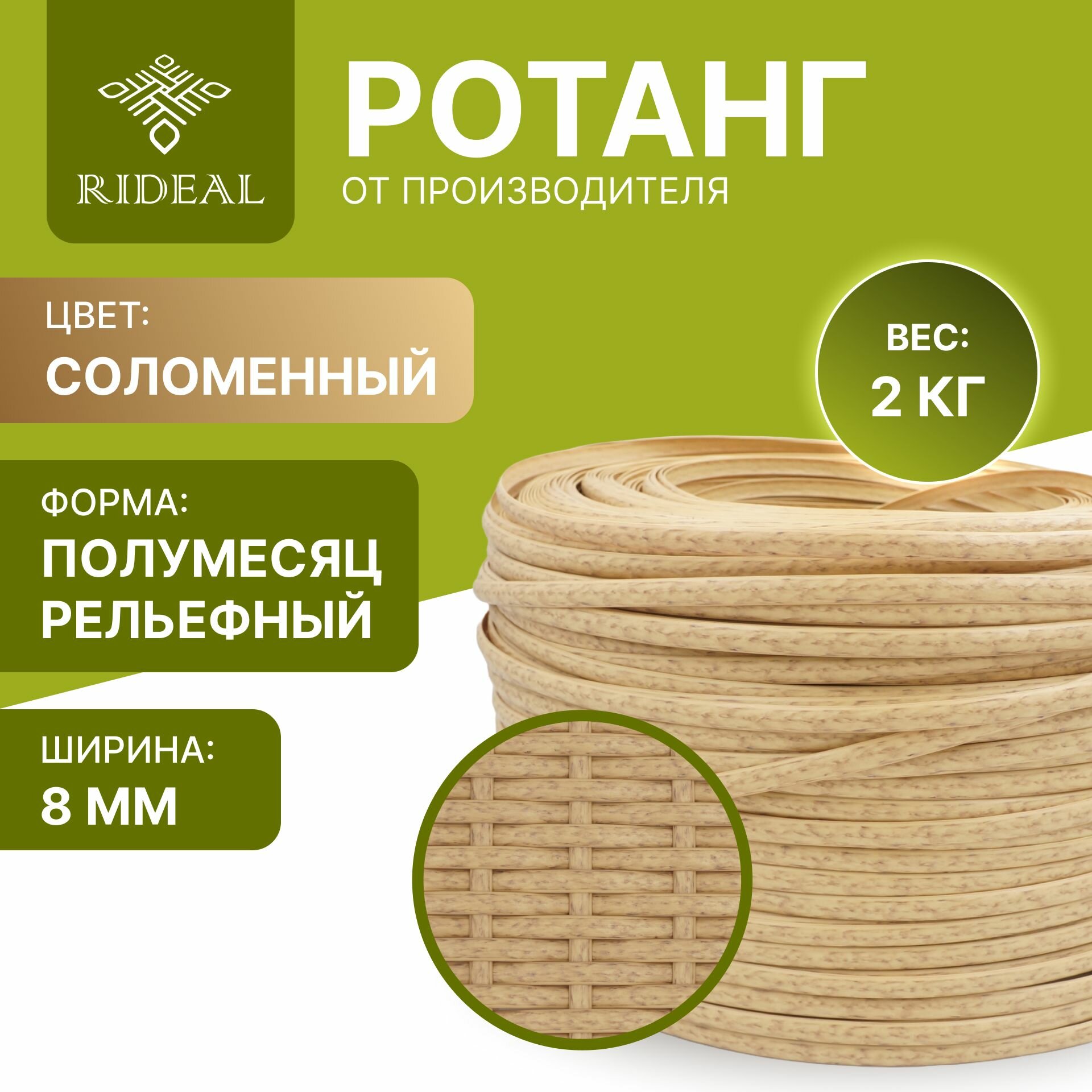 Купить Ротанг 2кг для плетения полумесяц рельефный, цвет соломенный
