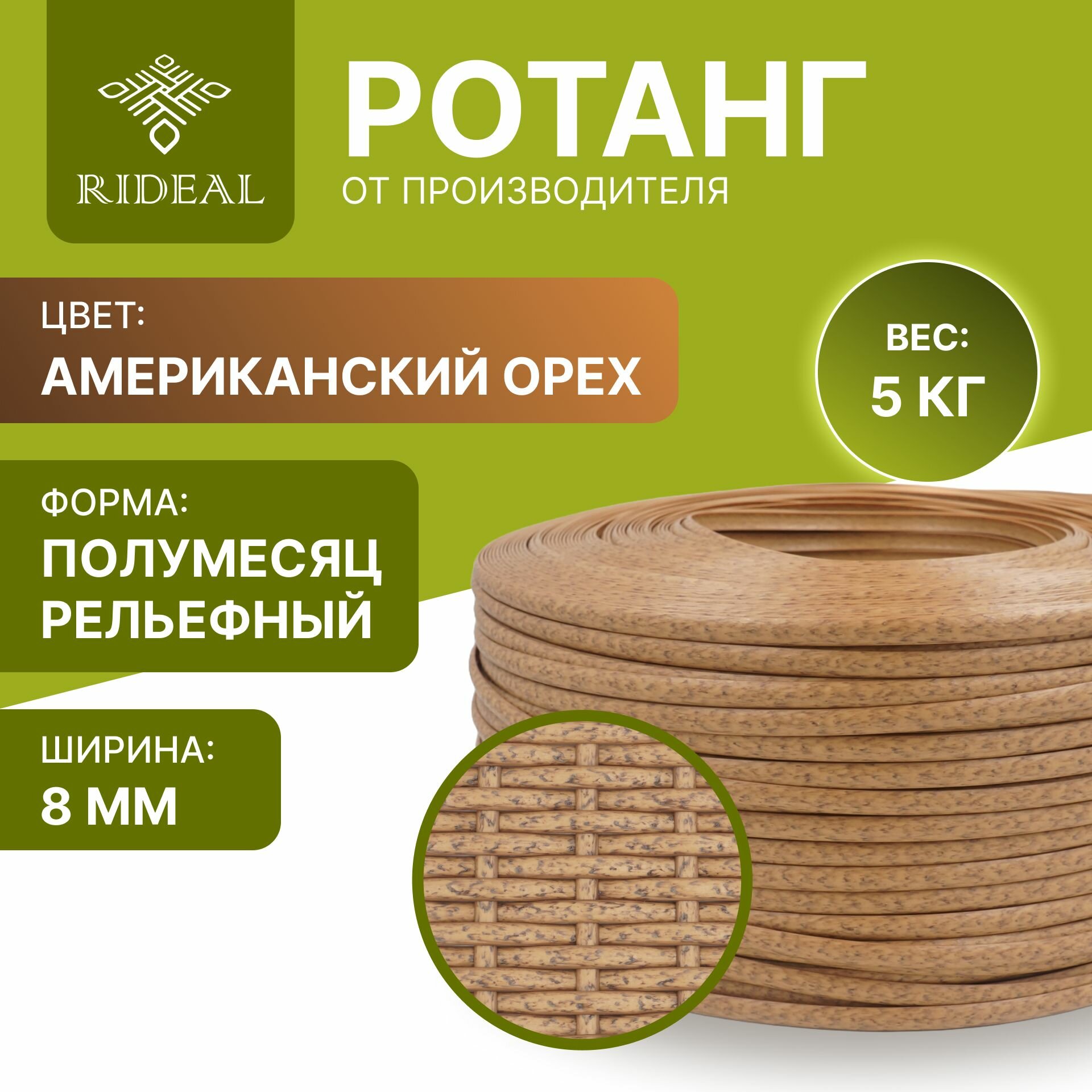 Купить Ротанг 5 кг для плетения полумесяц рельефный, цвет американский орех