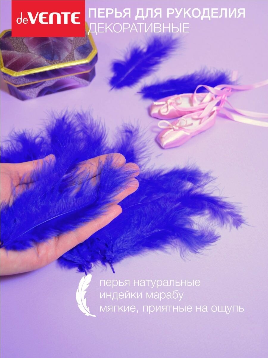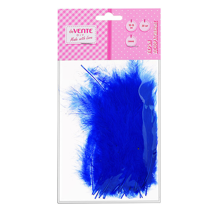 Перья декоративные "deVENTE" натуральные индюшиные, размер 10-15 см, 30 шт, розовые, в пластиковом пакете с блистерным подвесом