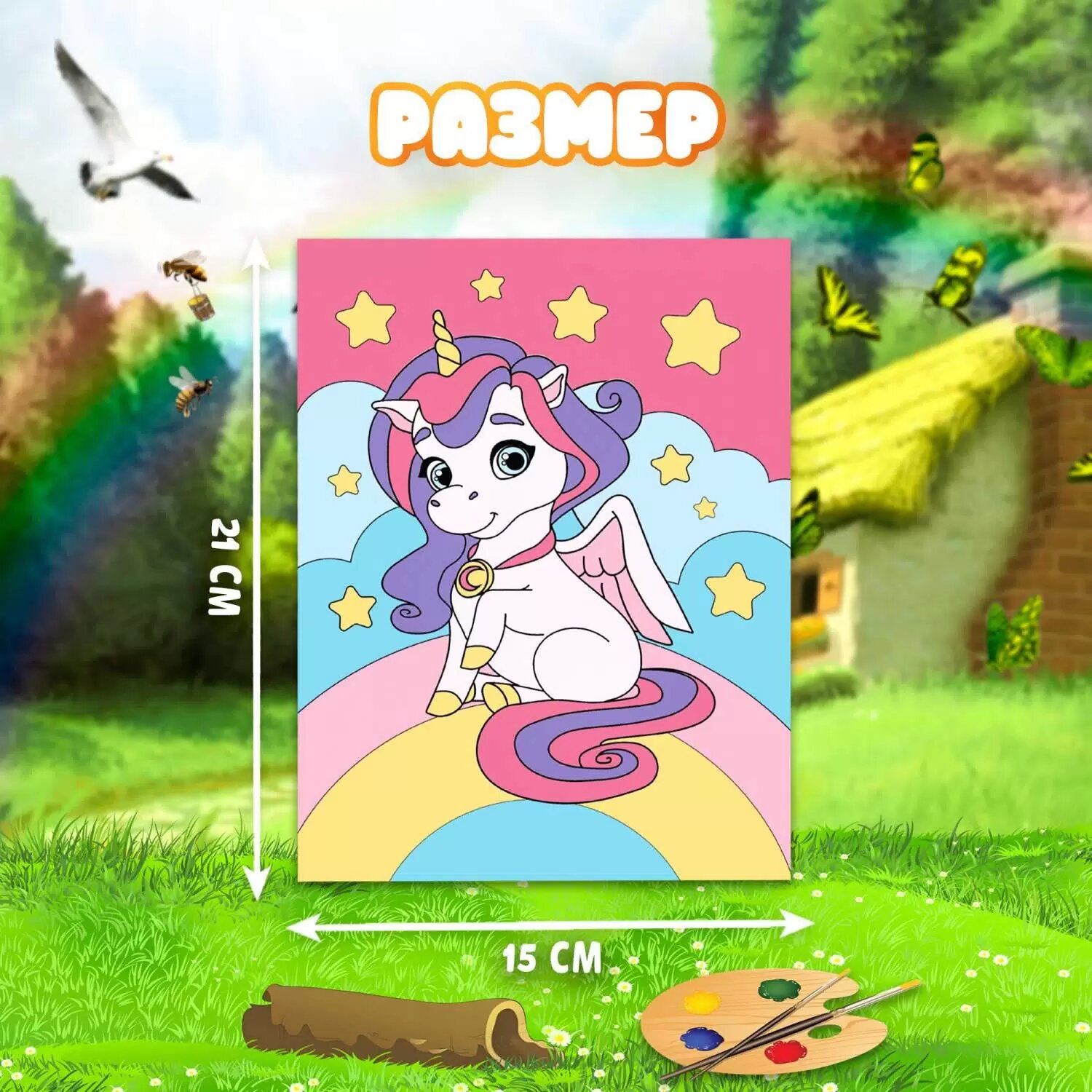 Картина по номерам для детей «Единорог на радуге», 21 х 15 с