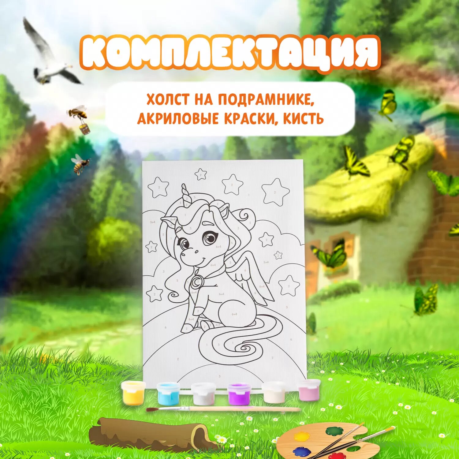 Картина по номерам на подрамнике Единорог на радуге 20?30 см Школа талантов 4583520 .