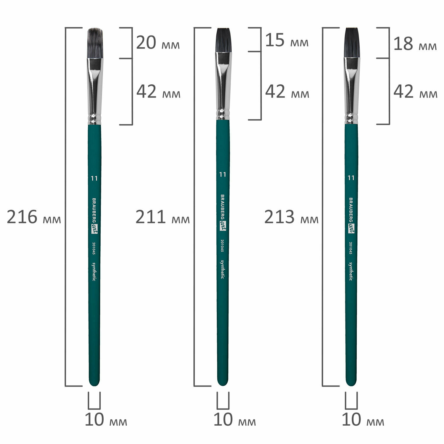 Купить Кисти художественные набор 15 шт+мастихин в пенале, изумрудные, синтетика, BRAUBERG ART DEBUT,201045