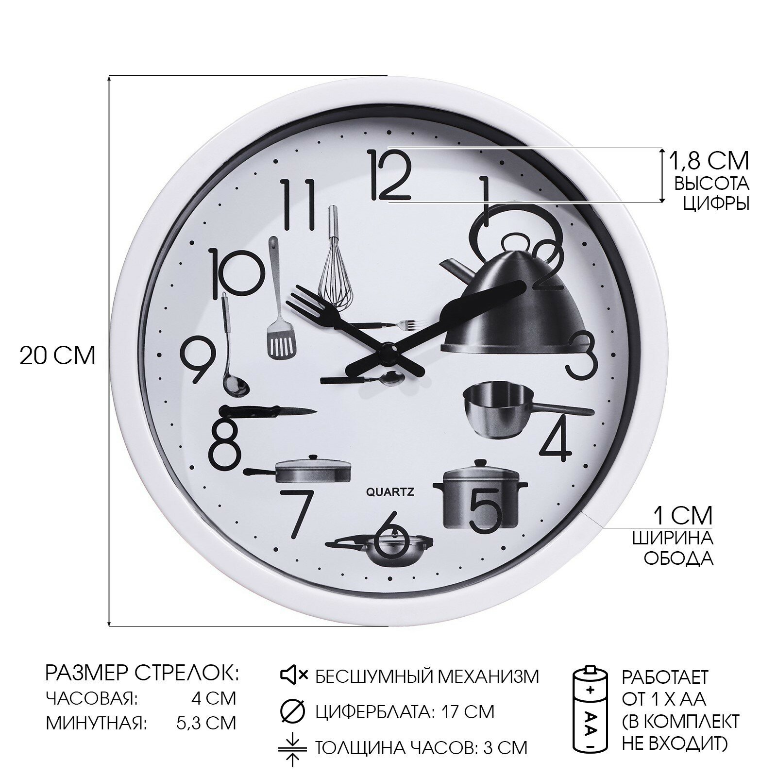 Часы настенные, для кухни, "Кухонные приборы", бесшумные, d-20 см