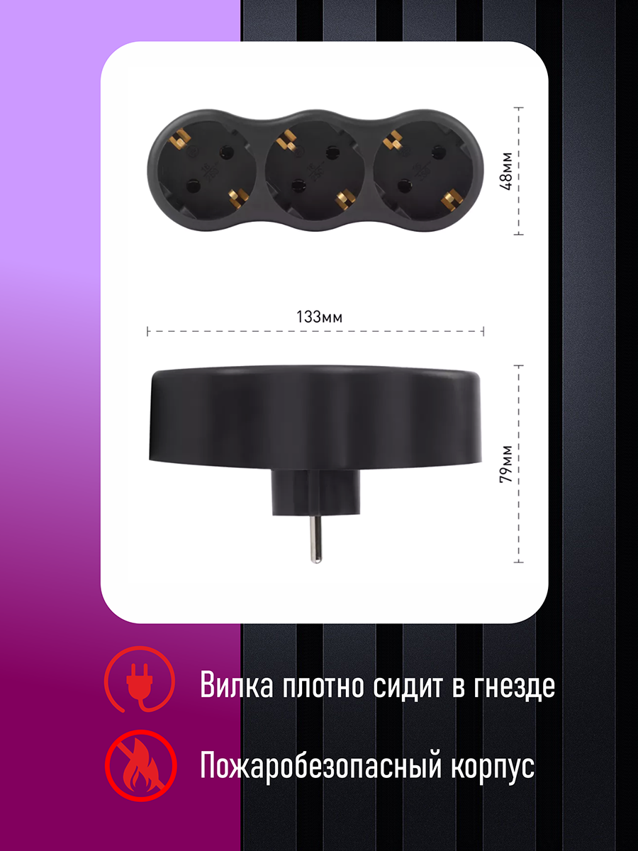 Тройник разветвитель SPx-3e-B ЭРА электрический Разветвитель на 3 розетки с заземлением 16А черный интересное:
