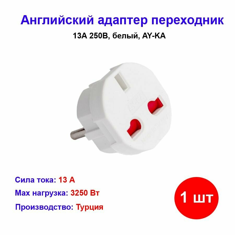Переходник с английской вилки 13А, 250В, белый, AY-KA