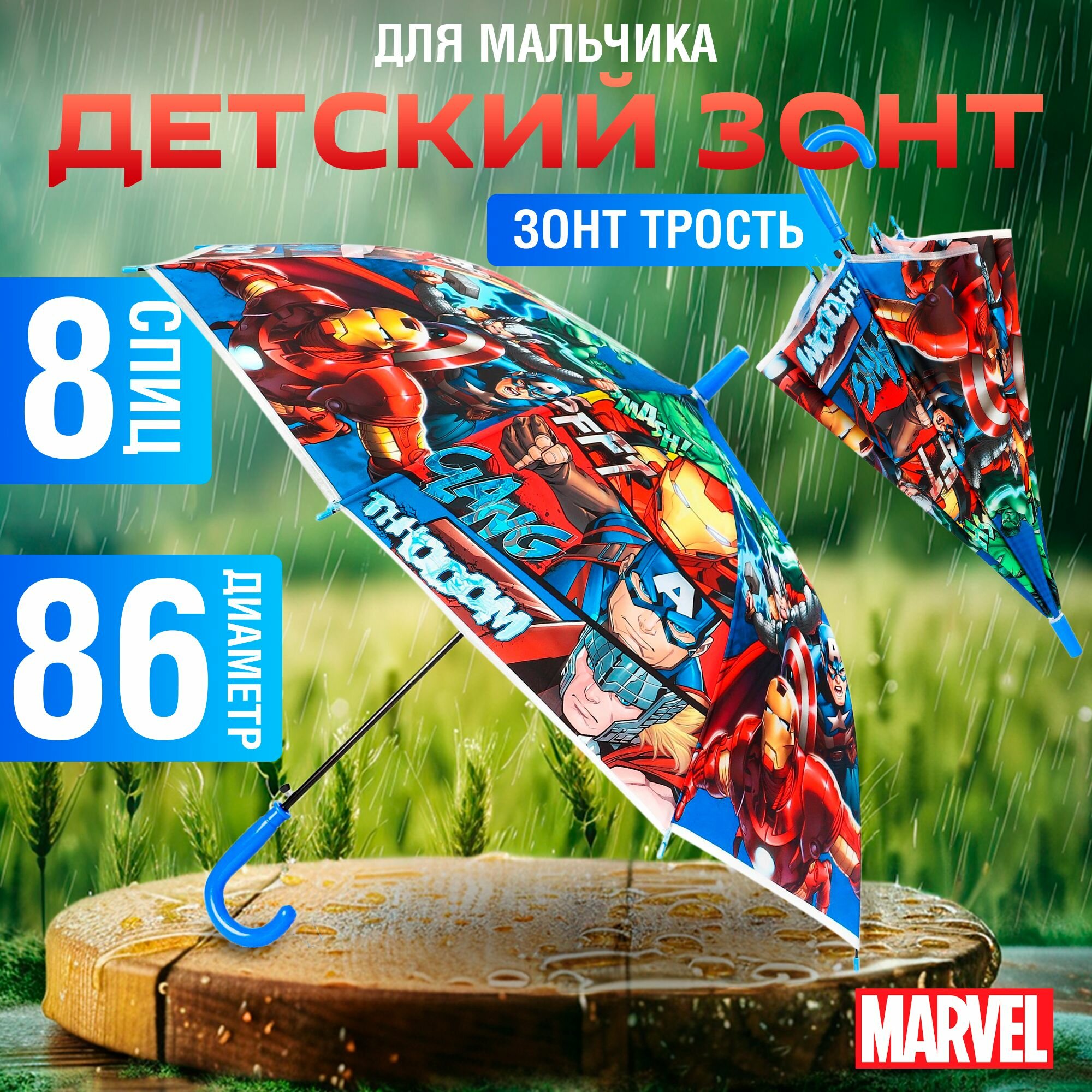 Зонт детский Марвел "Мстители", 8 спиц, зонт трость интересное: