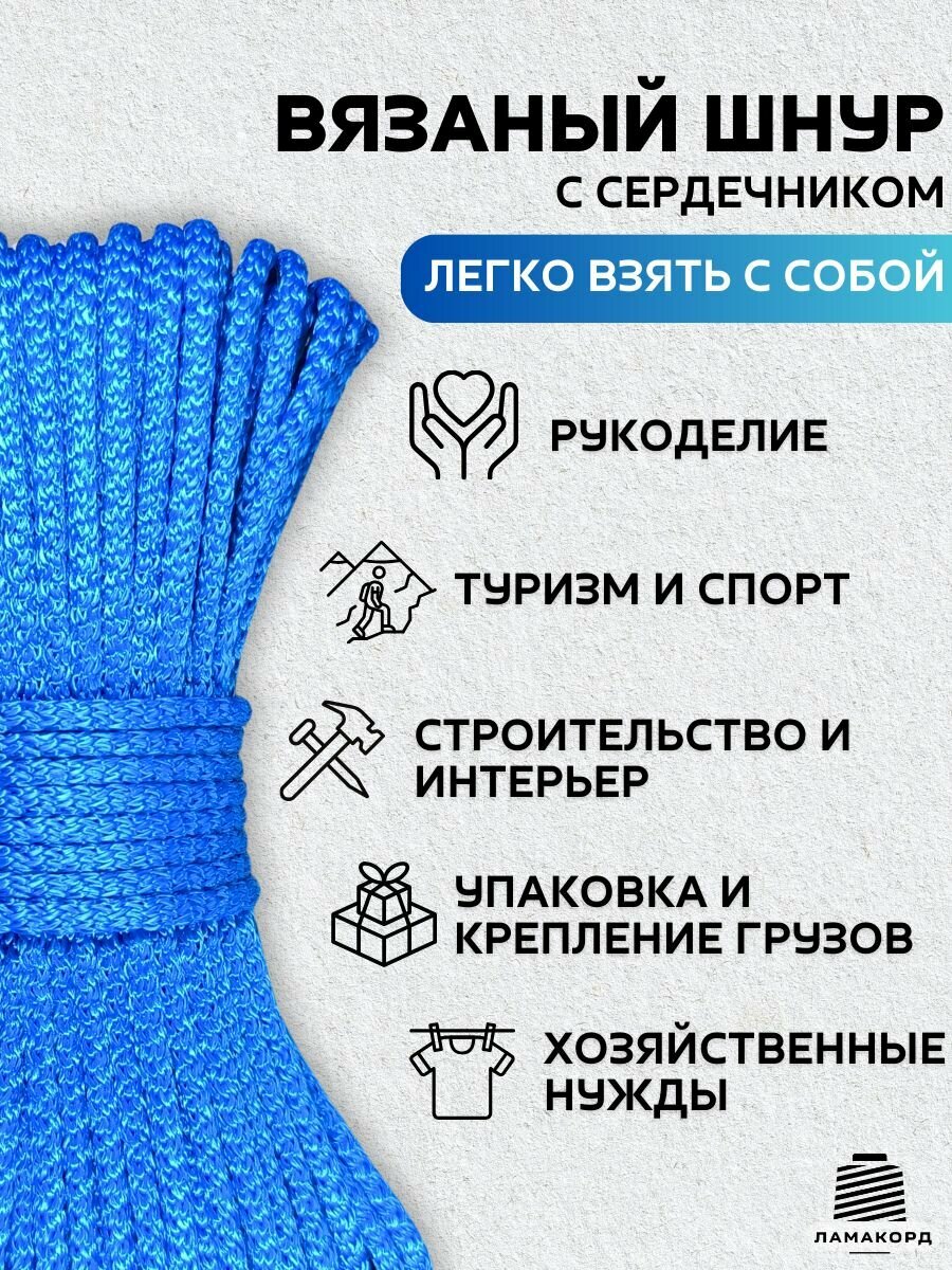 Веревка бельевая 4 мм 100 м синяя. Шнур бельевой вязаный полипропиленовый с сердечником