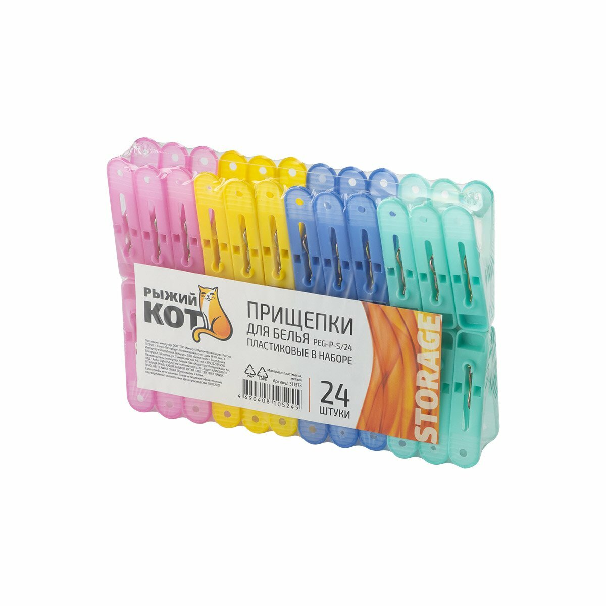 | Комплектация | Прищепки для белья Рыжий кот PEG-P-S/24, пластиковые, в наборе 24 шт. |