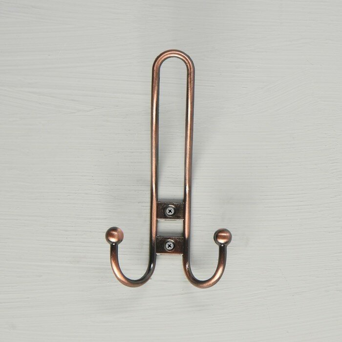 Крючок мебельный KM212AC, двухрожковый, цвет медь