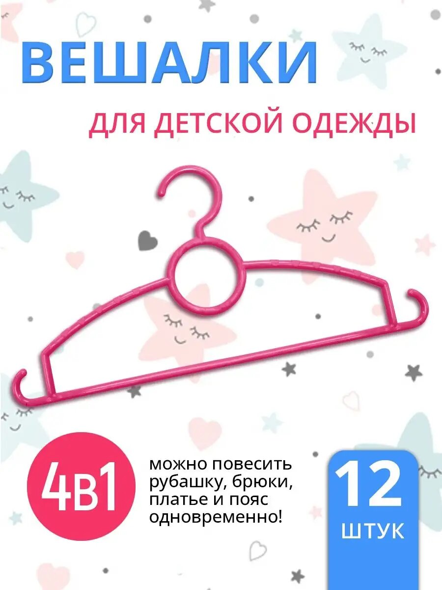 Вешалки-плечики детские набор 12 штук, 29см, цвет розовый интересное: