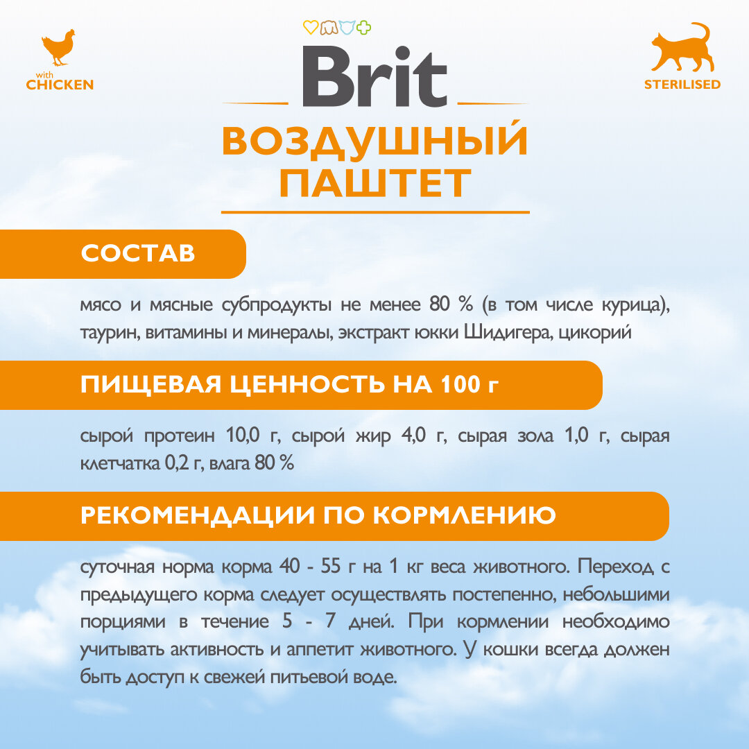 Брит. Воздушный паштет Курица для стерилизованных кошек, 14 х 100 гр интересное: