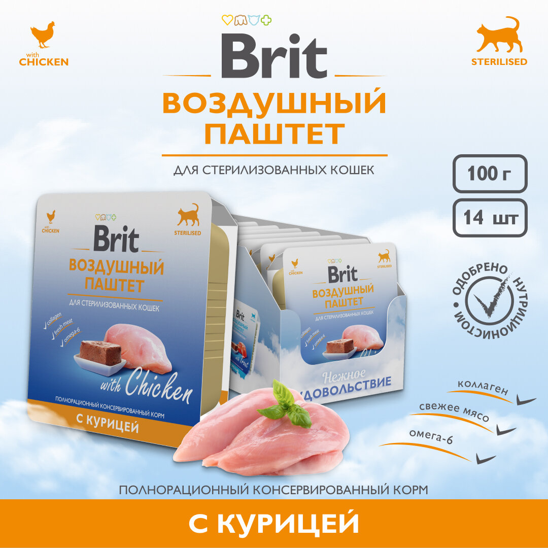 Влажный корм для стерилизованных кошек Brit Воздушный паштет с курицей 14 шт х 100 г