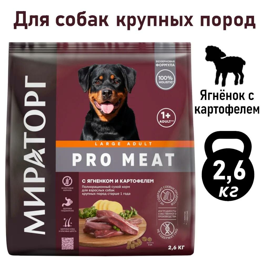 Мираторг Pro Meat сухой корм для взрослых собак крупных пород, с ягненком и картофелем - 2,6 кг