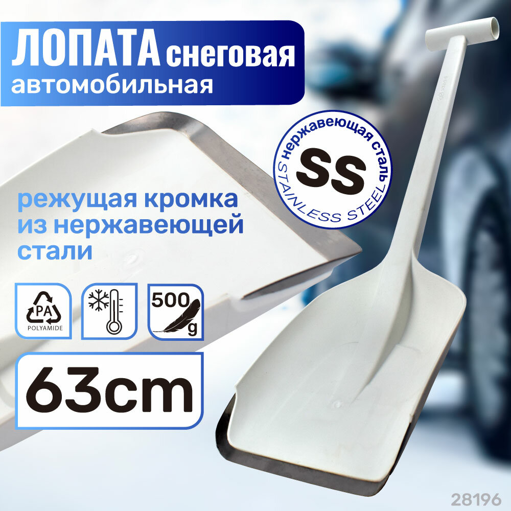 Лопата автомобильная снеговая 210х630мм мини, БЕЛАЯ 1019347 PA+SS SKRAB 28196