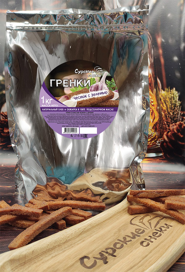 Гренки к пенному Чеснок с зеленью 1000г."Сурские снеки" интересное:
