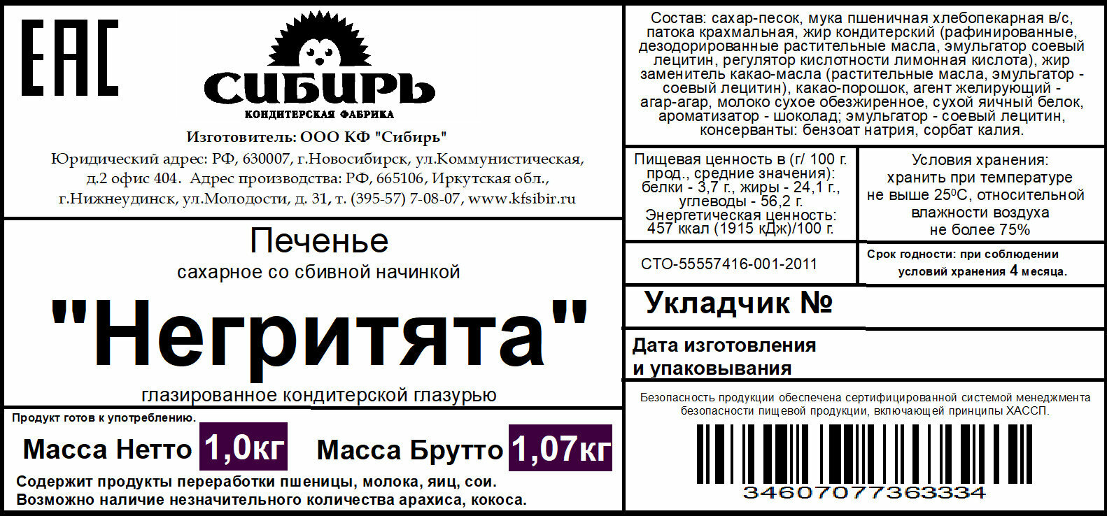 | Производитель | Кондитерская фабрика Сибирь |