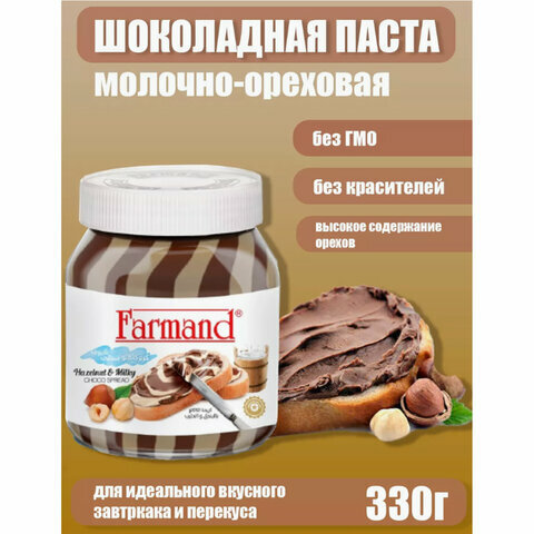Паста шоколадная FARMAND молочно-ореховая с фундуком, 330 г, ш/к 11309 интересное: